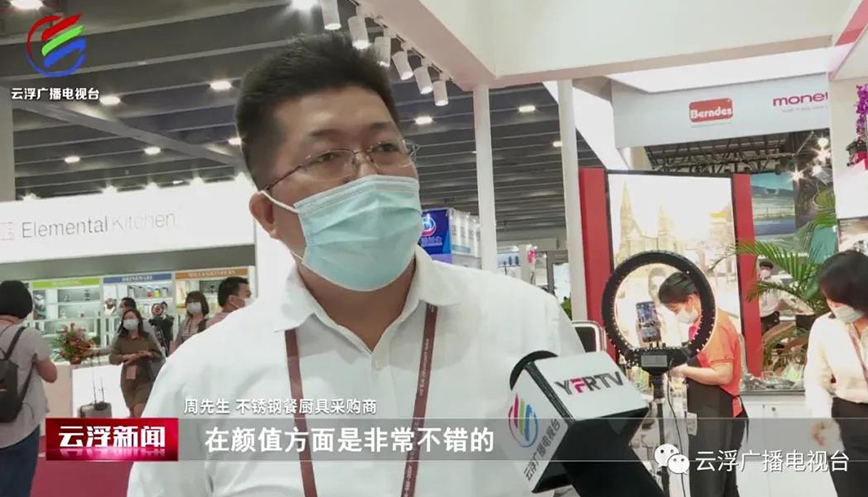 黃志榮:“這是我們最新推出的壓力鍋,它獲得了廣東第130屆進出口產品的設計獎金獎,是云浮市唯一獲得金獎的產品,主要有幾個特點:一是它有六重的安全裝置,第二是它可以節省百分之三十的能源。這次我們總共帶來了200到300款產品,主要以不銹鋼的餐廚具為主,還有鋁制的烘培類的產品和小家電,著力打造一個餐廚用品的一站式采購基地。”