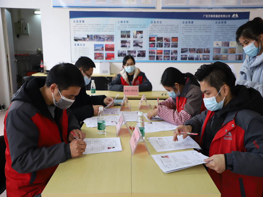 12月21日,萬(wàn)事泰集團(tuán)第一期職業(yè)技能等級(jí)認(rèn)定工作在總部培訓(xùn)室順利開展,評(píng)定現(xiàn)場(chǎng)由萬(wàn)事泰集團(tuán)職業(yè)技能等級(jí)認(rèn)定工作委員會(huì)主任陳永錦主持,集團(tuán)職業(yè)技能等級(jí)認(rèn)定工作委員會(huì)全體成員出席參與評(píng)定,新興縣人社局黨組成員梁漢鈞、就業(yè)培訓(xùn)科何智科長(zhǎng)等相關(guān)領(lǐng)導(dǎo)親臨現(xiàn)場(chǎng)監(jiān)督指導(dǎo)。