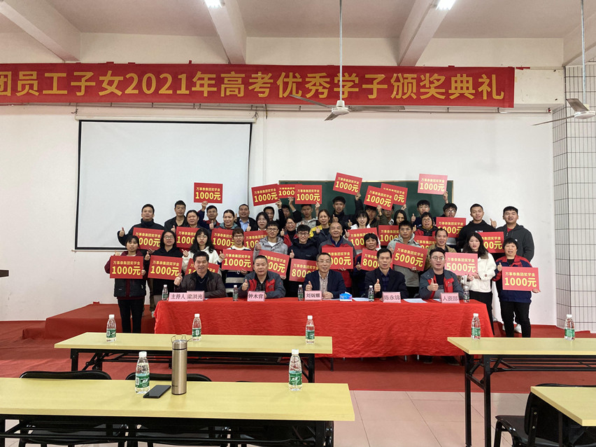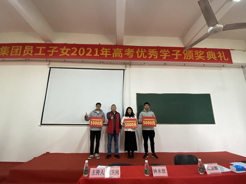頒獎典禮由黨支部書記、工會主席梁洪光主持,人力資源部主管區冠文宣讀《萬事泰集團關于員工子女獎學辦法》及獎學決定,陳永錦總監、梁洪光書記為23名普通本科高校學子頒發每人1000元獎學金,鐘木營總經理為211高校學子頒發每人5000元獎學金,劉炳耀執行總裁為985高校學子頒發每人8000元獎學金。