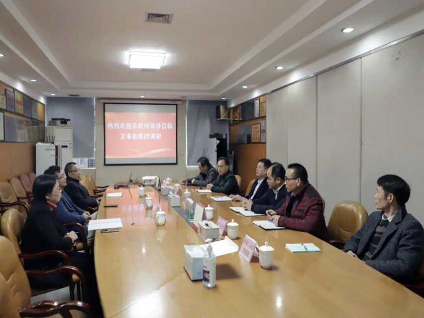 集團訊 2022年2月10日下午,由新興縣委副書記、縣長陳哲江,縣委常委、常務副縣長曾廣偉帶隊,縣供電局、新成工業園管委會、工信局、商務局組成的縣委縣政府新春走企業一行蒞臨廣東萬事泰集團調研。萬事泰集團董事長梁桂泉、執行副總裁劉炳耀陪同接待。
