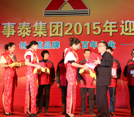首先梁桂泉董事長致辭,他對2014年萬事泰取得的成績表示滿意。接著,對2014年度優秀員工進行了表彰和獎勵,劉炳耀副總裁為優秀員工代表頒發了證書和獎金