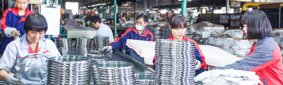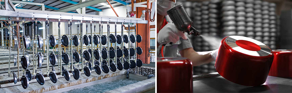 集團擁有先進的大規模生產基地,屬下工廠占地23萬余平方米, 標準廠房面積15萬多平方米,擁有自動/半自動生產線 20 余條、各類先進機械設備達 2000 多臺(套),主要生產設備和質量檢測設備均為進口或采用國內一流設備,關鍵技術從歐洲、日韓等國引進,設備 技術水平居于國內行業領先。集團生產能力位居行業前列,年可生產各種規格的不銹鋼餐廚炊具、鋁制餐廚鍋具達2800萬只、鋼化玻璃蓋1200萬只,小家電200萬只,不銹鋼和鋁制品年加工能力超過36000 噸,年可出口貨值超過 3500 個標準貨柜,能滿足世界各地客 戶大規模的訂單需要。